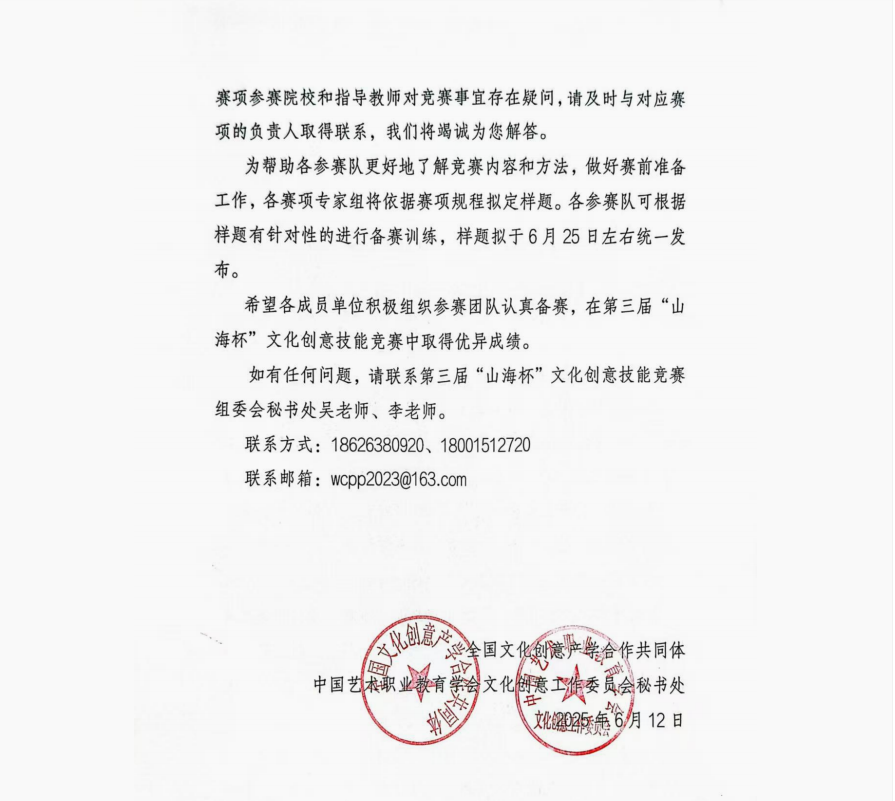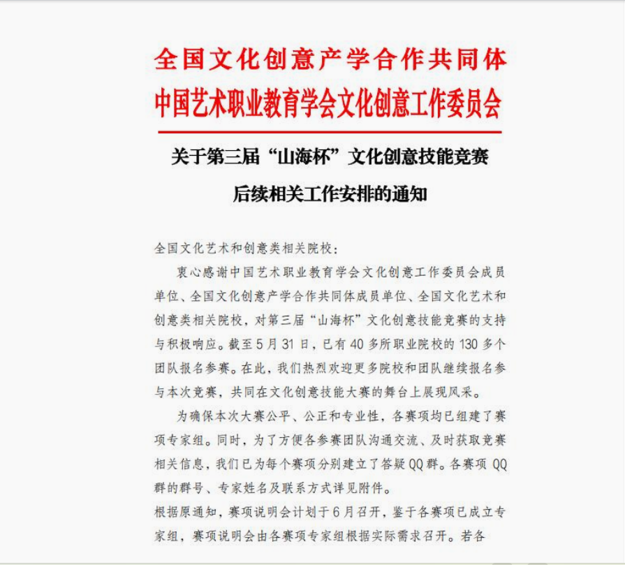 关于第三届“山海杯”文化创意技能竞赛后续相关工作安排的通知