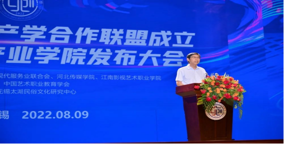 8月9日上午,全国文化创意产学合作联盟成立暨乡村振兴产业学院发布大会在江南影视艺术职业学院彩虹剧院举行。出席大会的政府和部门领导有:江苏省委教育工委副书记苏春海、无锡市副市长秦咏薪、农业农村部机关事业管理局副书记郑志灵、中国水产科学研究院副院长崔国辉、中国水产科学研究院淡水渔业研究中心主任徐跑、江苏省文旅厅科教处调研员李革、无锡市教育局局长范良、无锡市妇联主席蒋群联、无锡市文旅局副局长平伟东、惠山区副区长邱晓东以及惠山区文体局和职教园管理部门领导等。来自全国各地的本专科高等院校、中职学校、行业企业代表以及影视界、文化界、教育界资深专家学者、权威大咖120多人参加了线下会议,共同现场见证了联盟成立大会盛况。