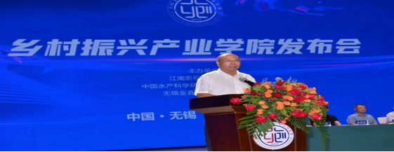 中国水产科学研究院淡水渔业研究中心主任徐跑向大会介绍了成立乡村振兴产业学院的背景和部署,得到了与会成员的高度认可和积极响应。中国水产科学研究院副院长崔国辉在讲话中表示:乡村振兴产业学院的创立,对实现农业强、农村富、乡村美起着特别重要的促进作用,中国水产科学研究院全力支持这一乡村振兴工程。农业农村部机关事业管理局副书记郑志灵(右)和中国传媒大学原副校长高福安为乡村振兴产业学院揭牌。
