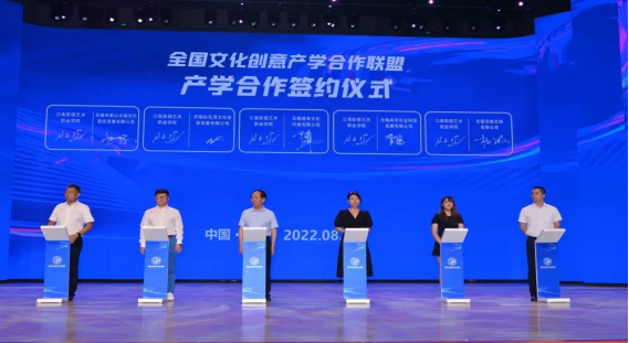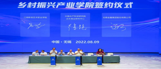 大会由江南影视艺术职业学院与无锡惠山古镇文化发展有限公司、无锡拈花湾文化投资发展有限公司、无锡君来文化传媒有限公司、无锡尚田农业科技发展有限公司、无锡浩维文创有限公司等单位签署了产学合作协议;由江南影视艺术职业学院、中国水产科学研究院淡水渔业研究中心和无锡金鑫集团股份有限公司签署了乡村振兴产业学院战略合作协议。