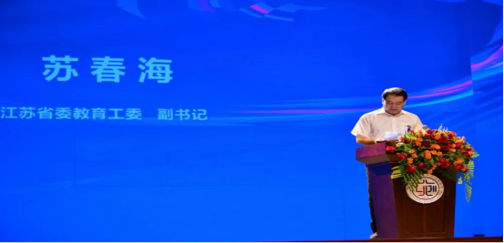 江苏省委教育工委副书记苏春海在大会发表重要讲话。苏书记指出,文旅部、教育部专门联合印发了《关于促进新时代文化艺术职业教育高质量发展的指导意见》,要求到2025年,文化艺术职业教育与文化事业、文化产业高质量发展以及文旅融合发展要求更加匹配。走联盟化、集团化办学之路,构建教育共同体,是深化产教融合、校企合作,激发职业教育办学活力的重大举措,是服务经济发展方式转变,协同推进职业教育与经济社会发展的有力支撑。在此背景形势下,江南影视艺术职业学院联合全国大中专院校、行业、企业近200家单位,牵头组建全国文化创意产学合作联盟,既是主动适应新时代对文化艺术教育的新要求,也体现了新时代高职院校高度的文化自觉与责任担当。苏书记要求各联盟单位要在平台建设上下功夫,要在资源共享上下功夫,要在人才培养上下功夫,要在打造品牌上下功夫,要在弘扬时代主旋律上下功夫,推动文化创意和职业教育融合发展,将联盟融入全面建设社会主义现代化和实现中华民族伟大复兴中国梦的新征程!