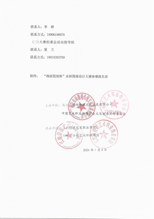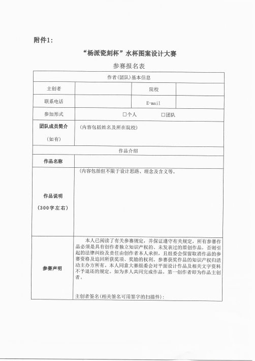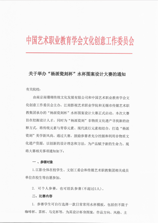 关于举办“杨派瓷刻”水杯图案设计大赛的通知