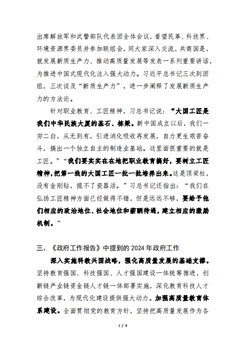 2024年全国两会精神主题学习材料汇编