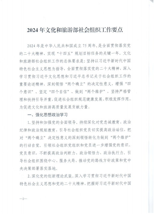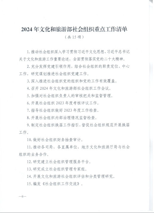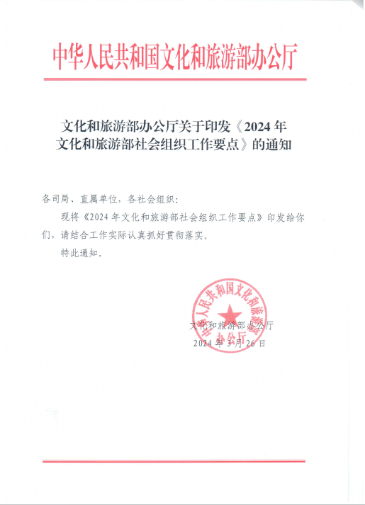 文化和旅游部办公厅关于印发《2024年文化和旅游部社会组织工作要点的通知》