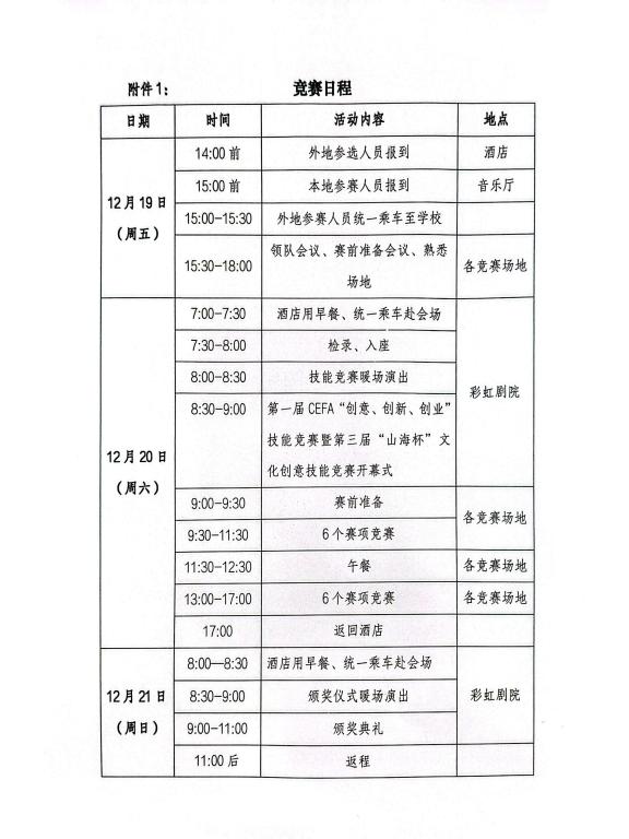 关于第一届CEFA“创意、创新、创业”技能竞赛暨第三届“山海杯”文化创意技能竞赛正式比赛的通知