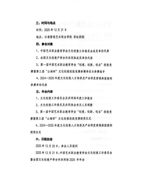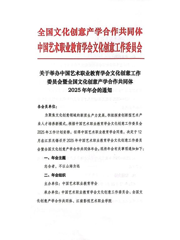 关于举行中国艺术职业教育学会文化创意工作委员会暨全国文化创意产学合作共同体2025年年会的通知